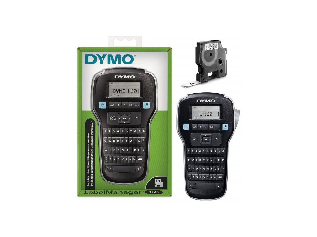 LabelManager 160 je základní model s QWERTY klávesnicí v řadě přenosných tiskáren DYMO.