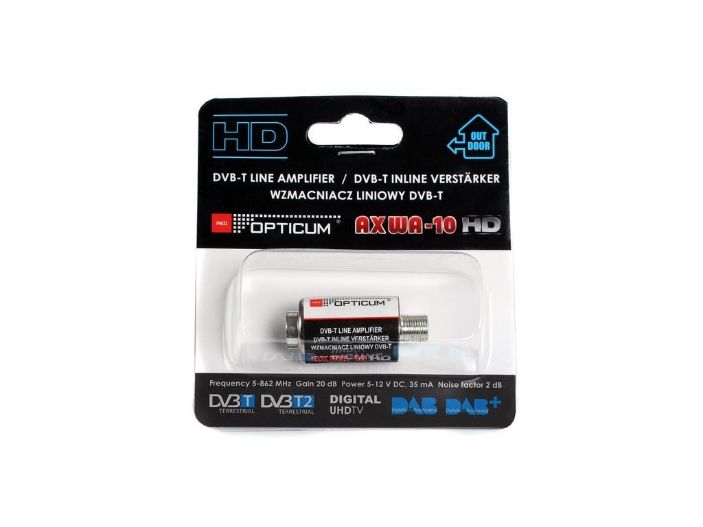 TV linkový zesilovač OPTICUM AX WA-10 VHF/UHF, 20dB/5-12V "F"