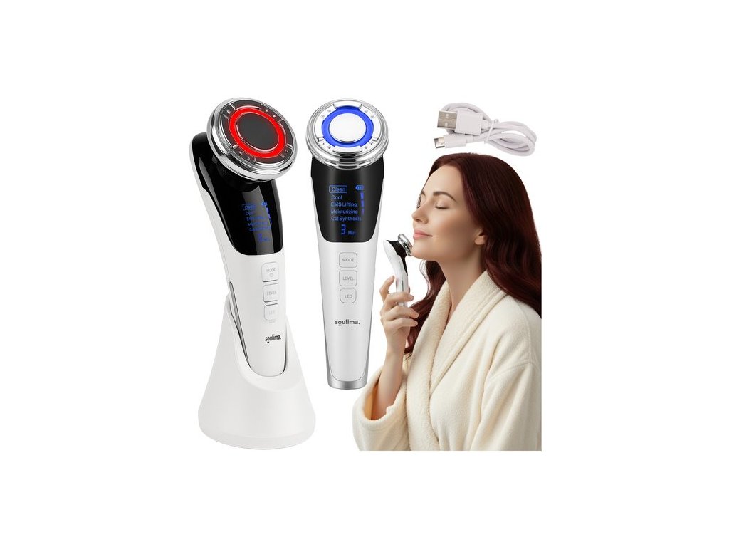 Ultrazvukový masážní přístroj na tvář 5 v 1, bílý Soulima 25888