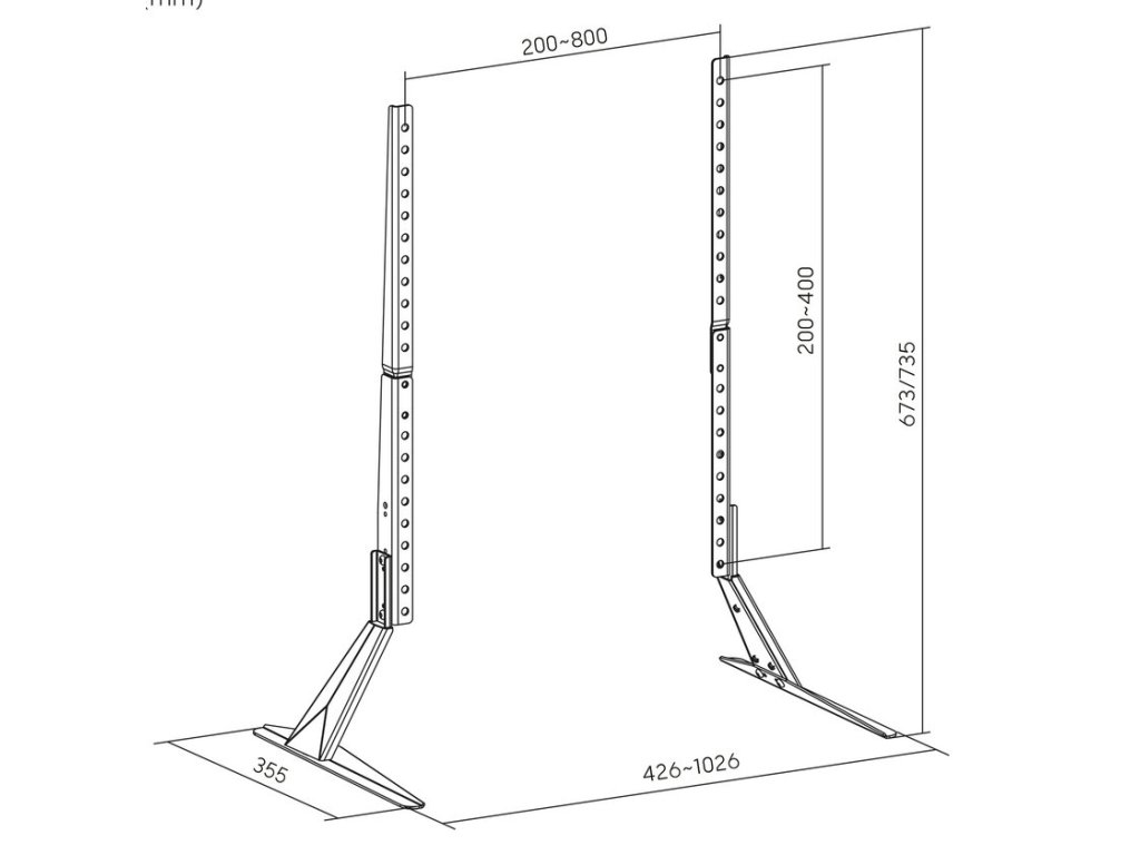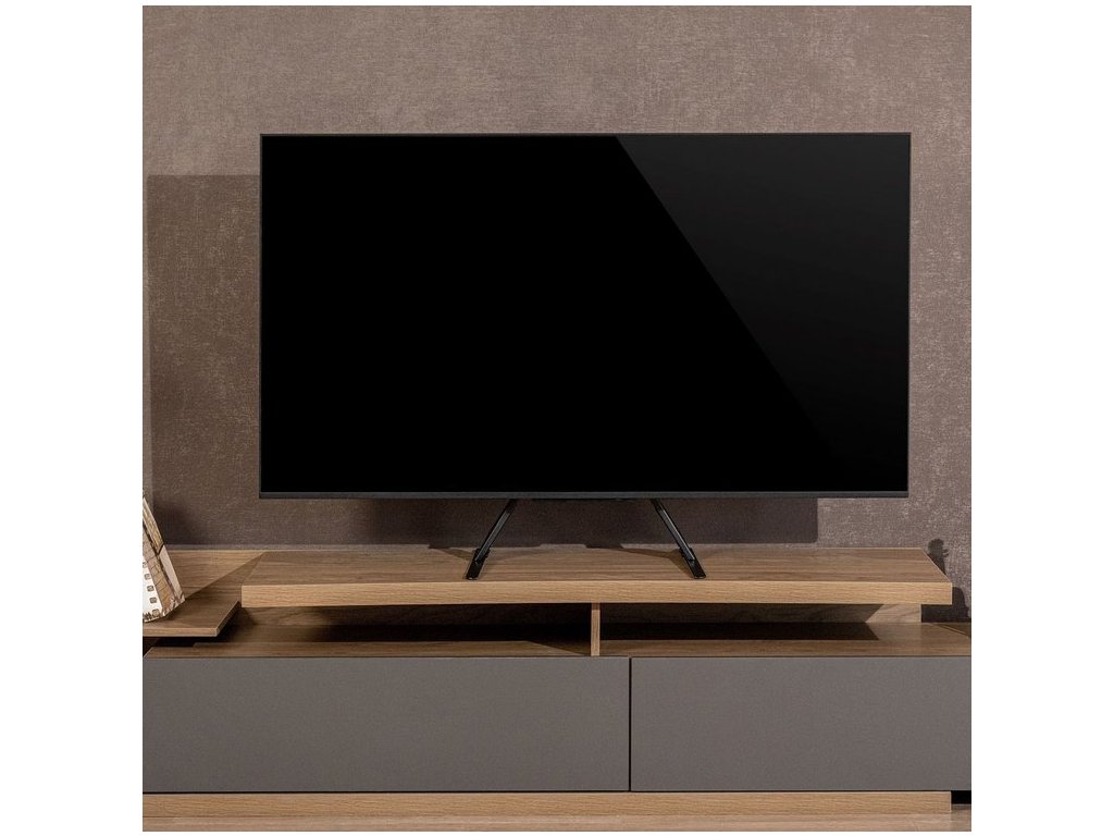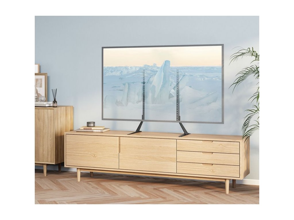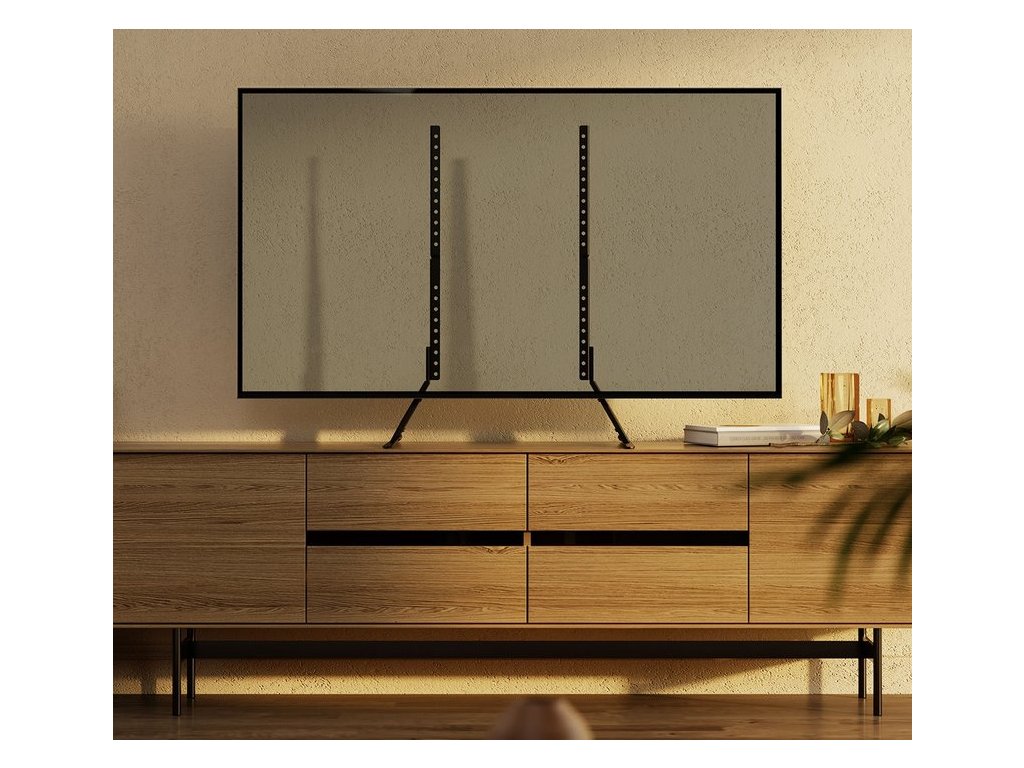Držák podporuje různé standardy VESA, což zajišťuje širokou kompatibilitu s různými modely televizorů. Rozsah nastavení výšky televizoru od 673 do 735 mm vám navíc umožňuje přizpůsobit si jeho polohu individuálním potřebám. Pevná konstrukce zaručuje stabilitu a moderní design se perfektně hodí do jakéhokoli interiéru.