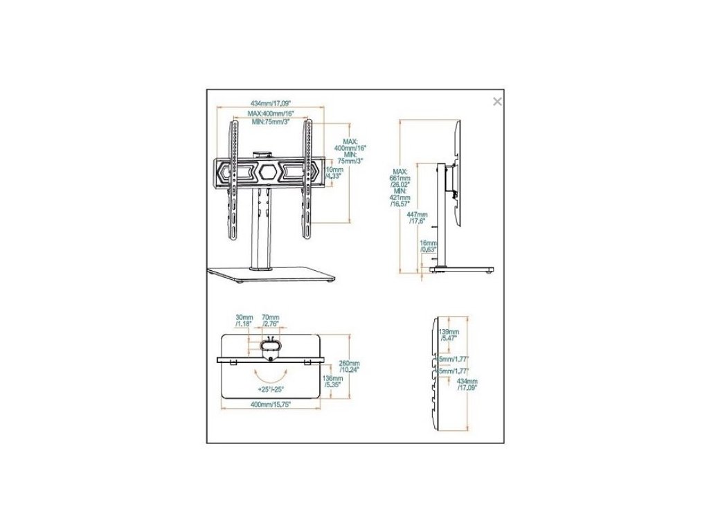 Hledáte elegantní a funkční stojan, který zajistí stabilitu a estetický vzhled vašeho televizoru? Tento univerzální TV stojan (32"-55") je perfektním řešením pro LCD televizory od 32 do 55 palců s maximální nosností 40 kg. Díky nastavení úhlu náklonu ±25° si můžete přizpůsobit polohu obrazovky svým potřebám a zajistit tak optimální pozorovací úhly. Stojan je vybaven nastavitelnými úchyty VESA, které odpovídají rozměrům od 75 mm do 400 mm na výšku i šířku, což zajišťuje všestrannou instalaci. Součástí balení jsou montážní šrouby a vodítka kabelů, které umožňují úhledné a uspořádané vedení kabelů. Elegantní černá barva se navíc bez problémů hodí do jakéhokoli interiéru.