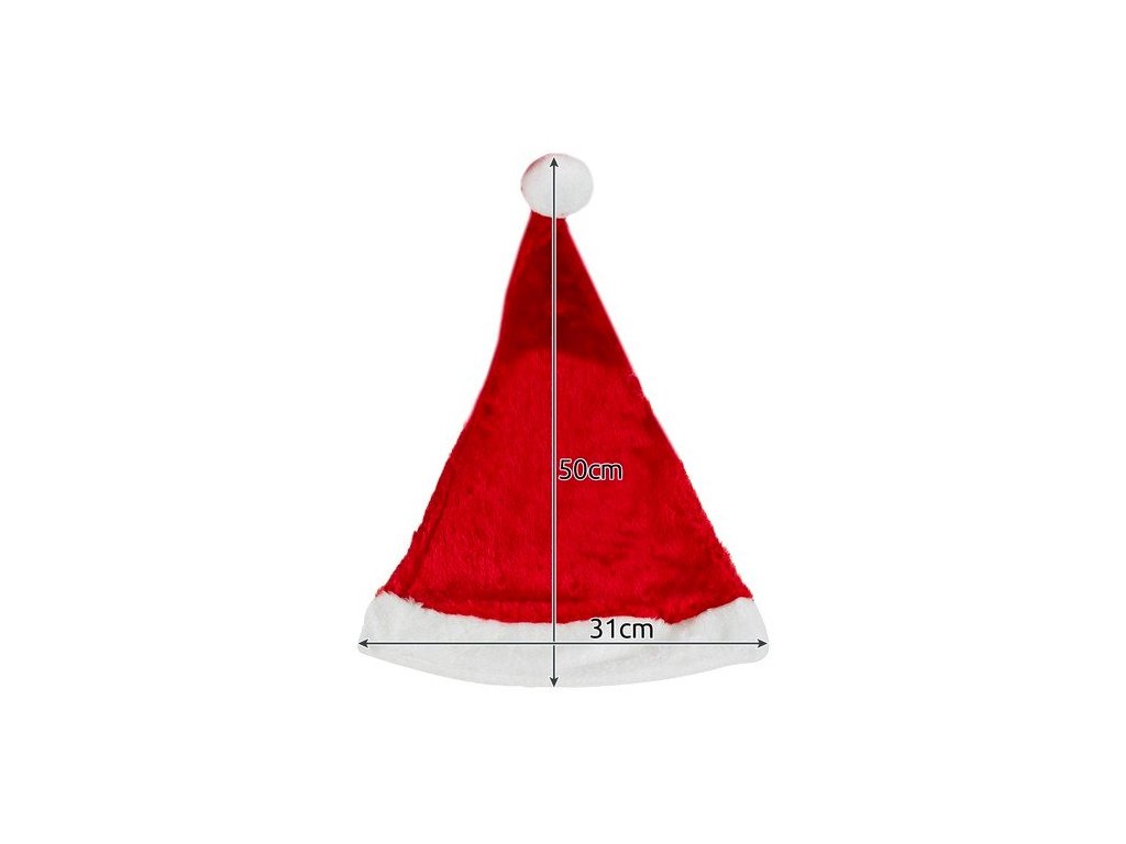 Santa Claus klobouk je charakteristická červená pokrývka hlavy, kterou nosí postava Santa Clause, spojená s oslavou Vánoc. Tento výrazný klobouk je vyroben z červeného plyše a na konci zdobený bambulí. Jeho tradiční design zahrnuje také bílé lemování na okraji. Jedná se o oblíbený kousek mikulášského oblečení, který symbolizuje radost a štědrost spojenou s obdobím svátků.