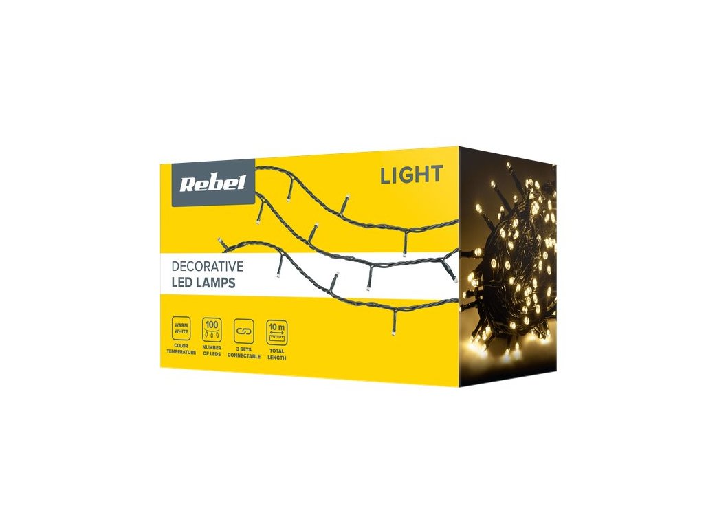Vánoční osvětlení řetěz REBEL ZAR0479, 100LED/10m, teplá bílá , IP44