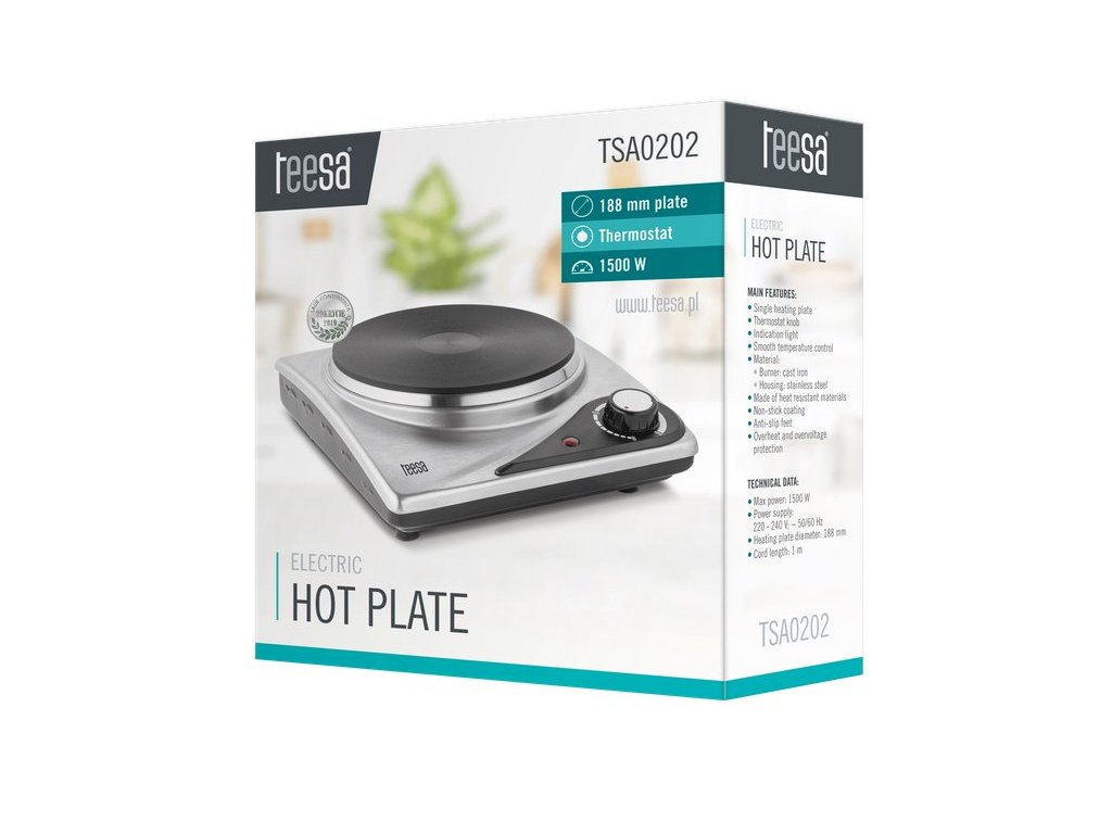 Vařič elektrický jednoplotýnkový TEESA TSA0202, 1500W, nerez