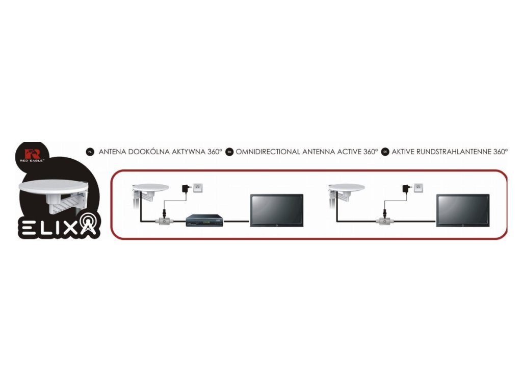 - Kvalitní venkovní / vnitřní rádiová televizní anténa s vestavěným zesilovačem, zisk: 25dB