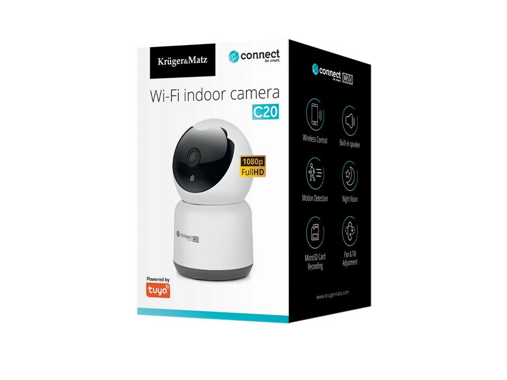 Kruger&Matz Connect C20 vám umožní náhled do kterékoli místnosti ve vašem domě. Dokonalou kvalitu obrazu zaručuje objektiv s rozlišením 2 MPx, který v kombinaci s plynulostí 20 FPS umožňuje vysílat obraz v rozlišení Full HD.