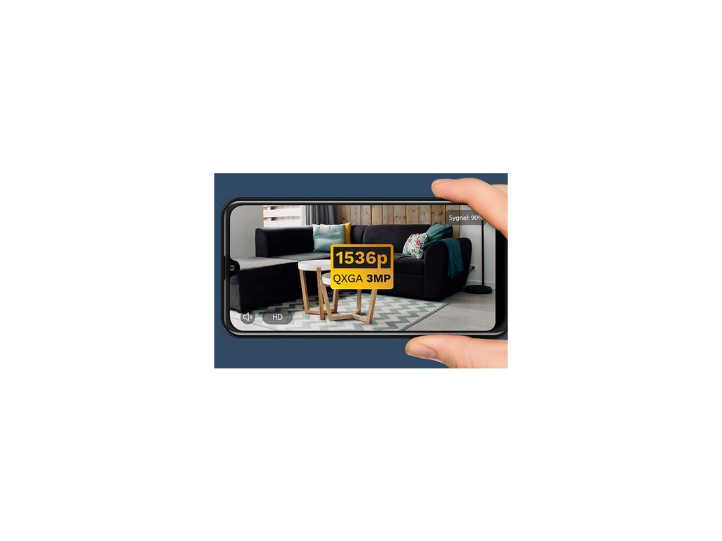 Otočná dohledová WiFi kamera Kruger&Matz má široké zorné pole, takže vám umožní mít pod kontrolou celý vybraný prostor. Ve speciální aplikaci můžete zařízení ovládat v úhlu 355° horizontálně a 70° vertikálně.