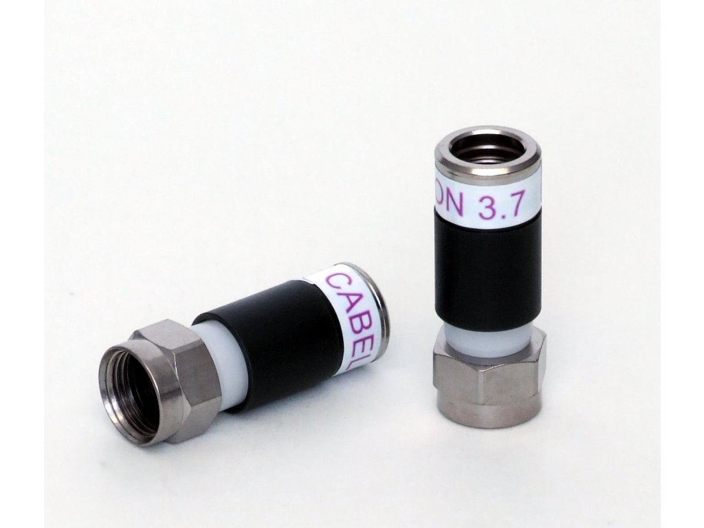 Samolisovací vodotěsný F konektor Cabelcon F-59 3,7 je ideální pro venkovní instalace, zajišťující vynikající stínění a snadnou instalaci díky svému designu.