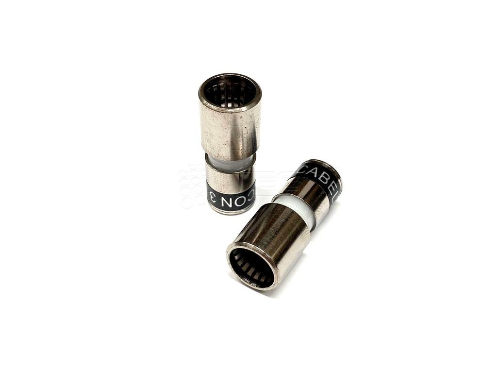Samolisovací vodotěsný F konektor Cabelcon F-59 3,7 je ideální pro venkovní instalace, zajišťující vynikající stínění a snadnou instalaci díky svému designu.