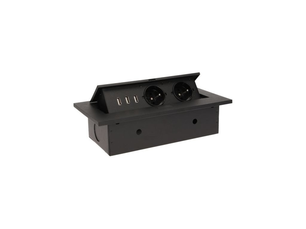 Výklopný blok ORNO OR-AE-1324/B, 2x2P+Z, 3xUSB, černá