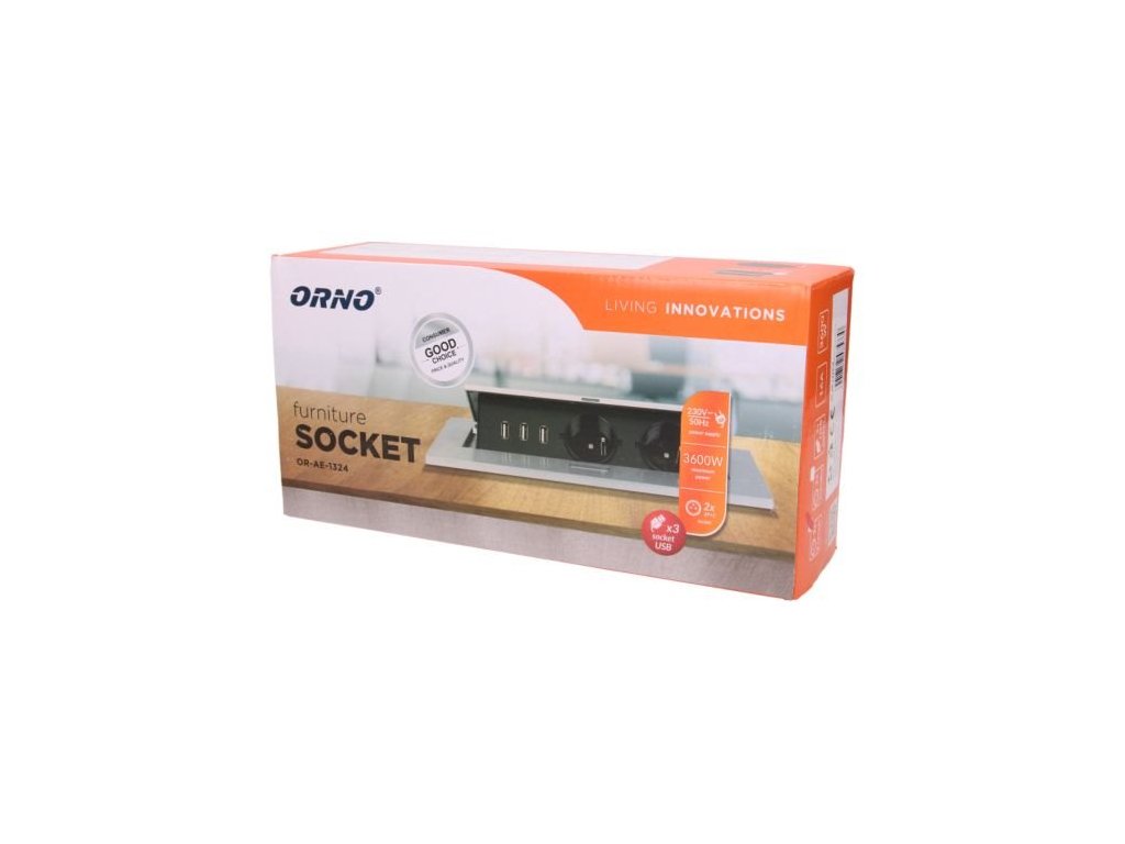 Výklopná zásuvka do pracovní desky ORNO OR-AE-1371/G nabízí **3 zásuvky** a **maximální zatížení 3600W**. Je ideálním řešením pro snadný přístup k elektrickému napájení.