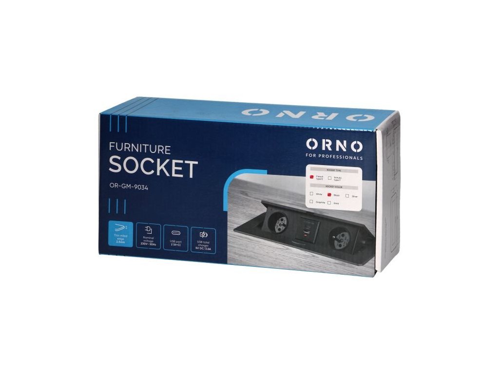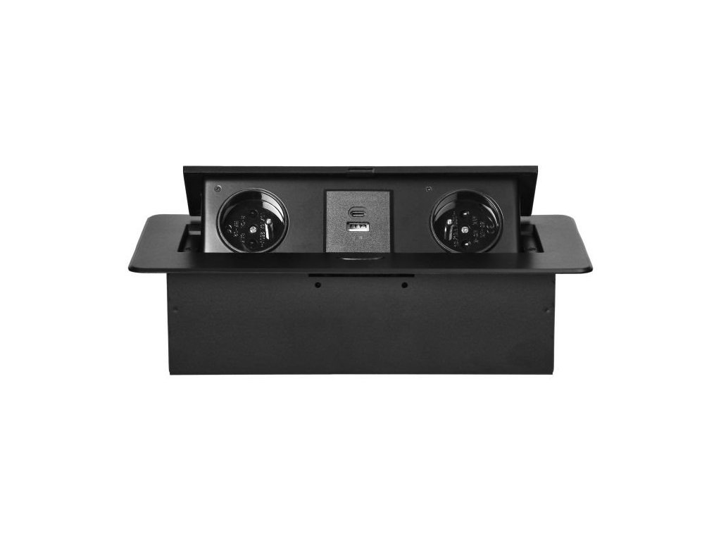 Výklopný blok zapuštěný ORNO OR-GM-9034/B, 2x 230V, 1x USB-A, 1x USB-C, černá