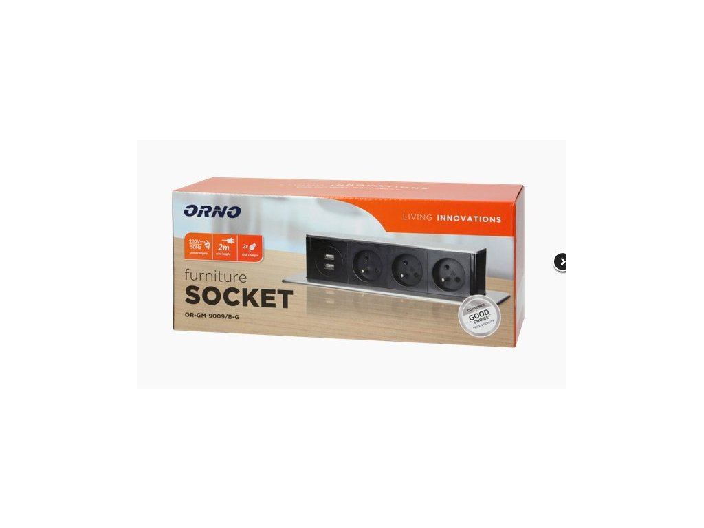 Výsuvný blok ORNO OR-GM-9009/B-G nabízí 3 zásuvky a 2 USB porty pro pohodlné nabíjení. S nerezovým povrchem a 2m kabelem je ideální volbou pro moderní kanceláře a domácnosti.