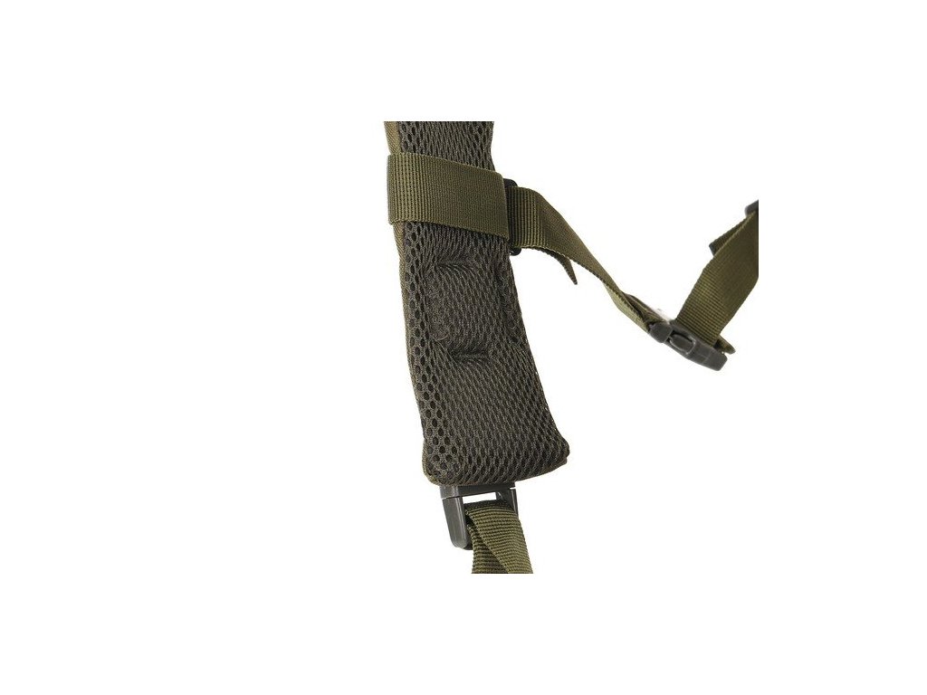 RYCHLÝ SYSTÉM UVOLNĚNÍ BATOH - batoh má nosný systém, který tvoří profilované ramenní popruhy s rychloupínacími přezkami, což je praktické řešení a umožňuje okamžité sundání batohu. Plynulé nastavení profilovaných ramenních popruhů, hrudní pás a bederní pás, který lze odepnout, zajišťují stabilní nošení - pás umožňuje ulevit páteři a ramenům při nošení batohu - veškerá váha je soustředěna na boky. Na přední části batohu a na ramenních popruzích jsou použity pásky PALS, které umožňují uchycení vybavení v systému MOLLE - to umožňuje instalaci dalších kapes.