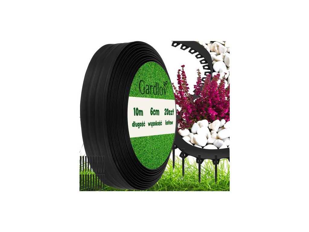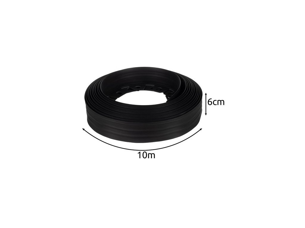 Zahradní okraj 6 cm x 10 m černý s 20 kolíky - flexibilní okraje trávníku pro vaši zahradu!