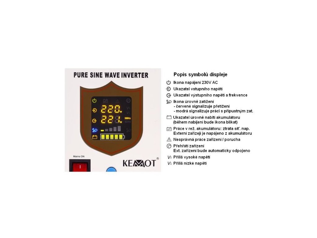 Vlastnosti záložního zdroje UPS KEMOT PROsinus 500W 12V