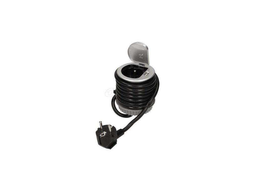 Zapuštěná zásuvka ORNO OR-AE-1373 230V + USB nabíjecí, stříbrná, přívod 1,8m