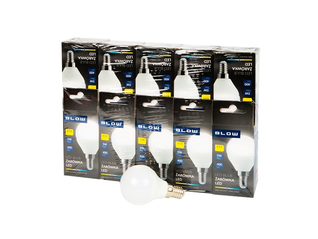 Žárovka LED E14 G45 ECO BLOW 87-435 s výkonem 5W nabízí svítivost 400lm a neutrální bílé světlo při teplotě 4000K. Prodáváme pouze po celých baleních (10ks).