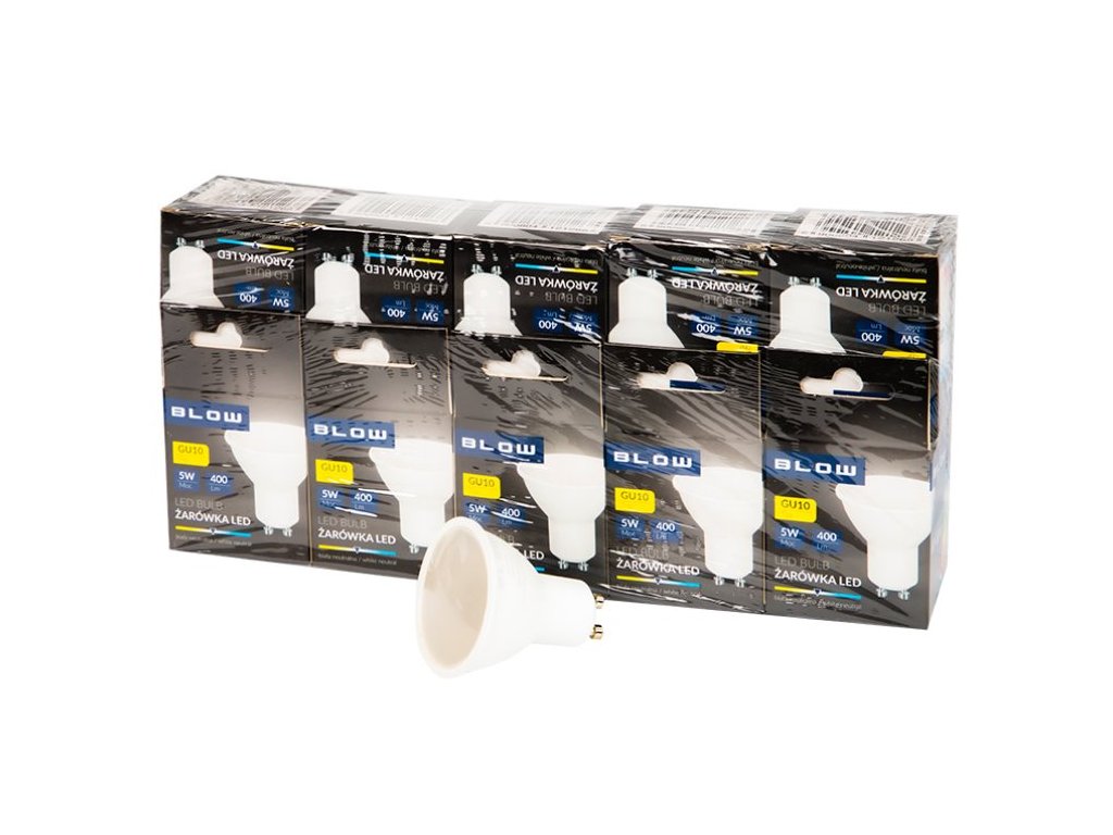 Žárovka LED GU10 BLOW 87-437, 5W, **neutrální** bílá s **400lm** svítivostí a **energetickou třídou A++**. Prodáváme pouze po celých baleních, přidávejte do košíku v násobcích 10.
