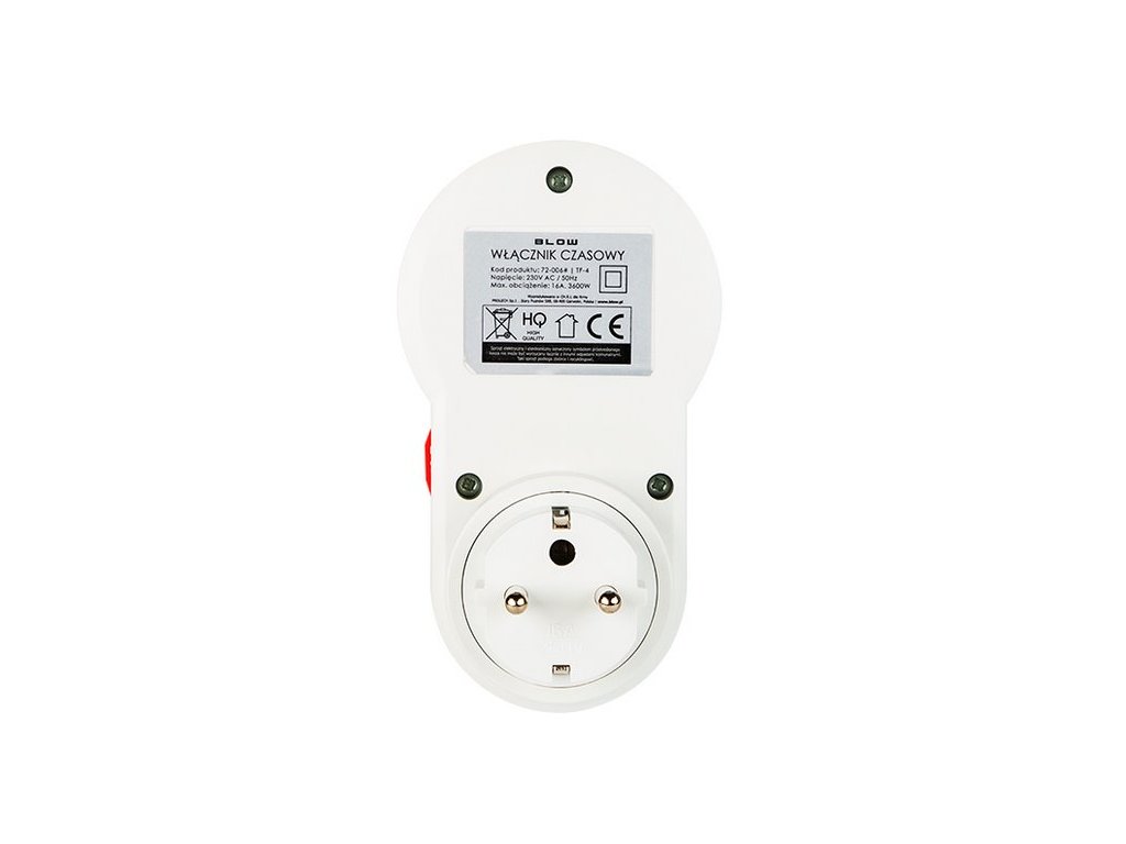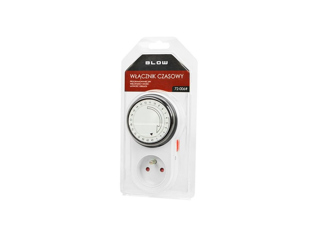 Zásuvka spínací mechanická BLOW 72-006 nabízí ruční programátor pro plánování zapnutí a vypnutí. Maximální zatížení činí 16A, 3600W, ideální pro každodenní použití.