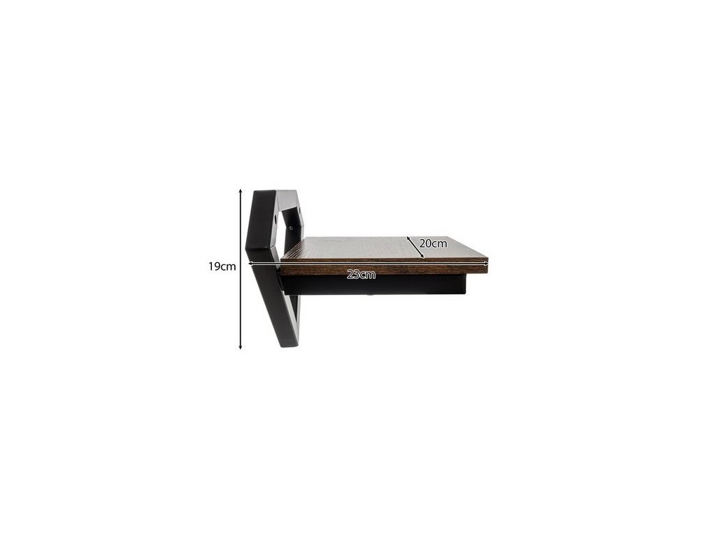 SPECIFIKACE – materiál: rám: ocel, police: MDF; maximální zatížení: 10 kg; pro vlastní montáž: ano; styl: loft; rozměry: 19 x 23 x 20 cm; hmotnost: 1,24 kg; hmotnost balení: 1,3 kg.