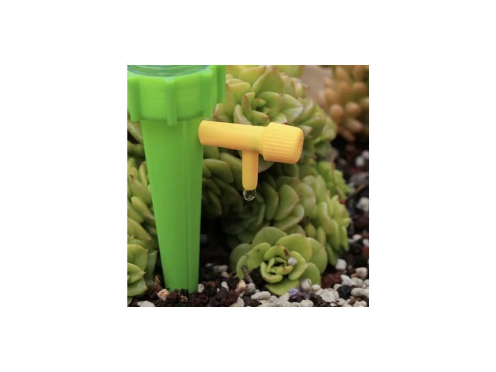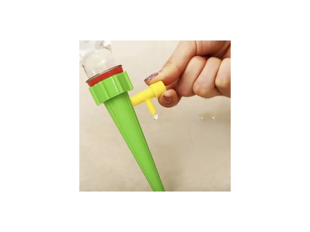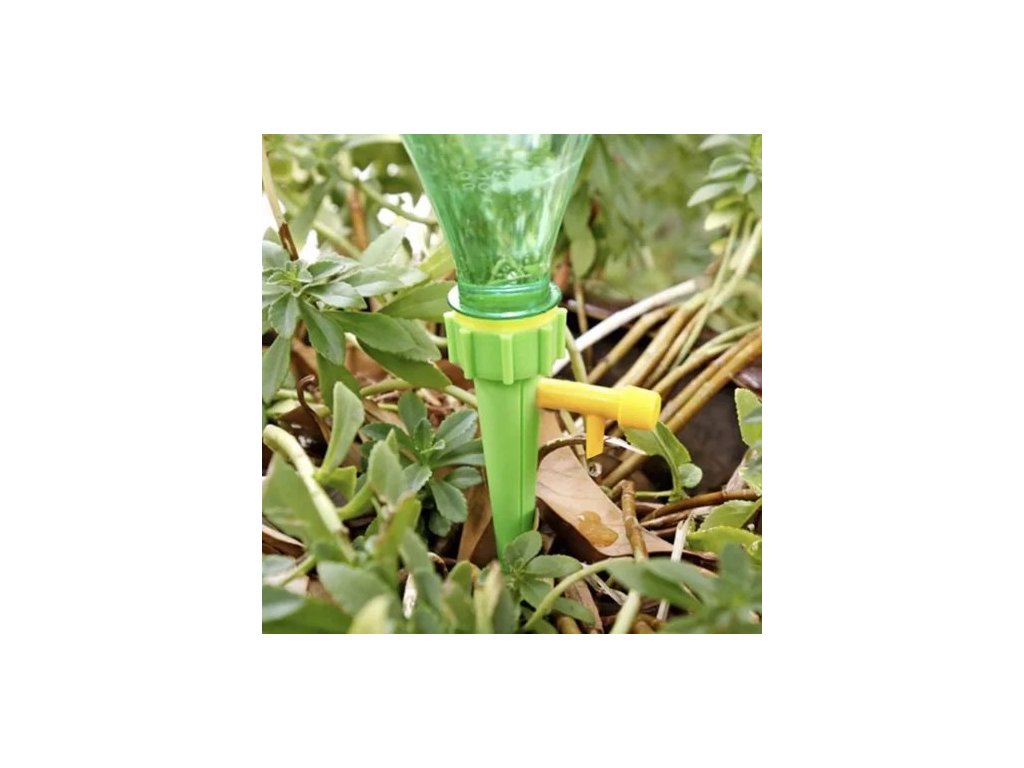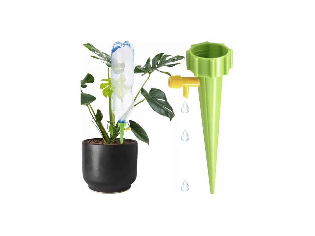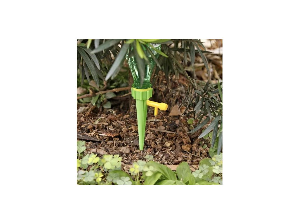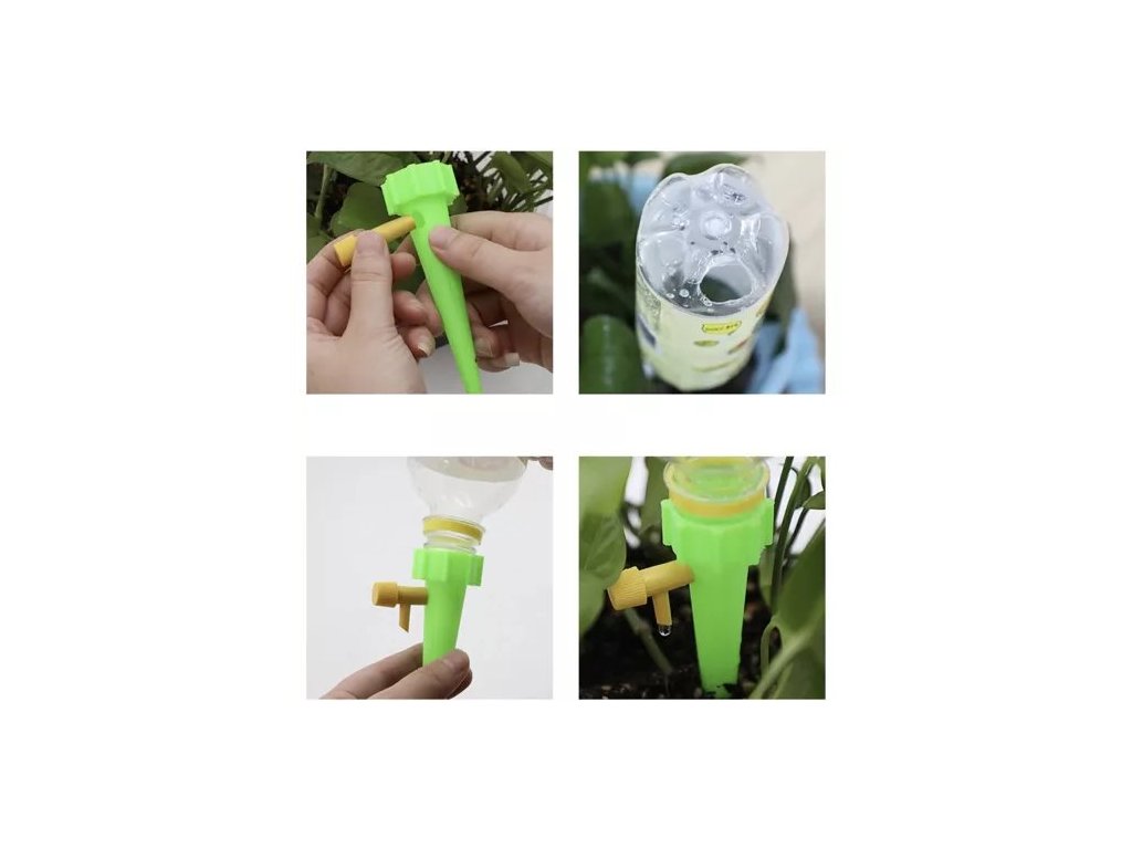 SNADNÁ INSTALACE + ODPOUŠTĚNÍ - zavlažovací zařízení stačí našroubovat na láhev s vodou (nejlépe kdyby byla v láhvi otvor), zasunout ji do země s rostlinou, otočit kohoutkem a poté pomocí knoflíku regulovat vodu proud, který rostlině dodává vodu.
