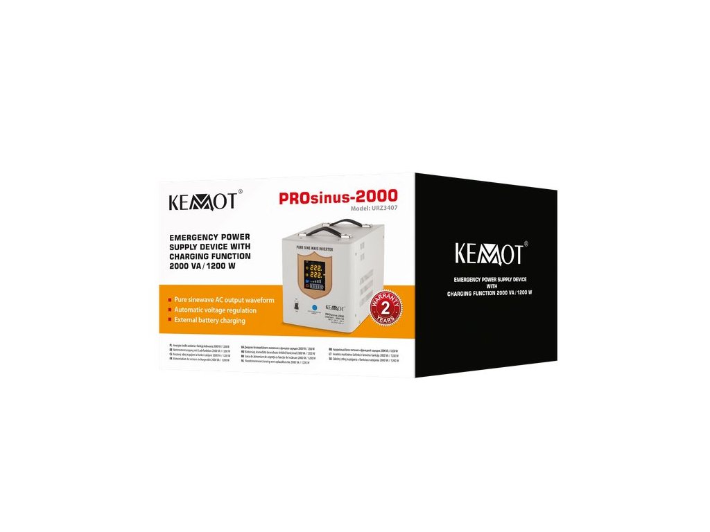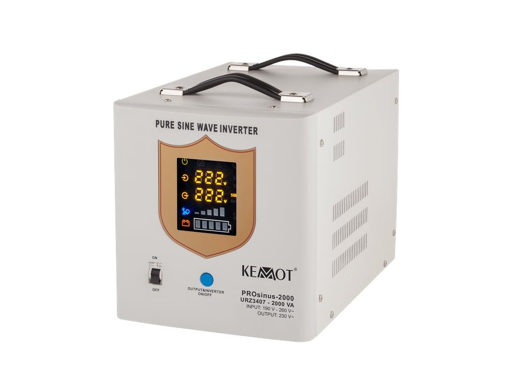 Zařízení KEMOT se vyznačuje čistým sinusovým průběhem výstupního napětí, který zajišťuje bezpečný a stabilní provoz a brání přehřátí indukčních zátěží. S pomocí 12V akumulátoru (není součástí balení) získáte kompletní napájecí systém zajišťující stabilní napájení z elektrické sítě 230V. Tento záložní zdroj se používá nejen pro nouzové vytápění, ale také pro napájení různých domácích spotřebičů, elektroniky a elektrického nářadí.