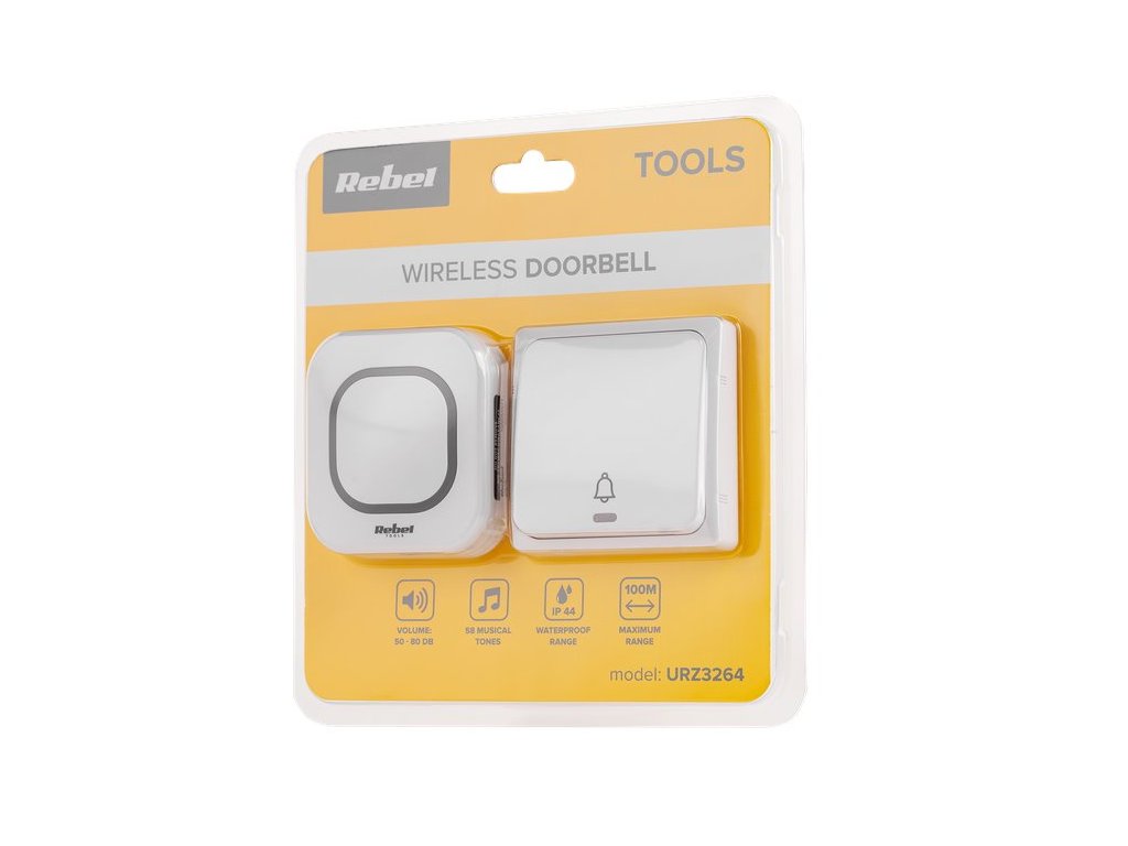 Zvonek bezdrátový REBEL URZ3264 nabízí 58 melodií s regulovatelnou hlasitostí a provozním dosahem až 150 metrů. Je ideální volbou pro pohodlné a efektivní oznámení návštěvy.